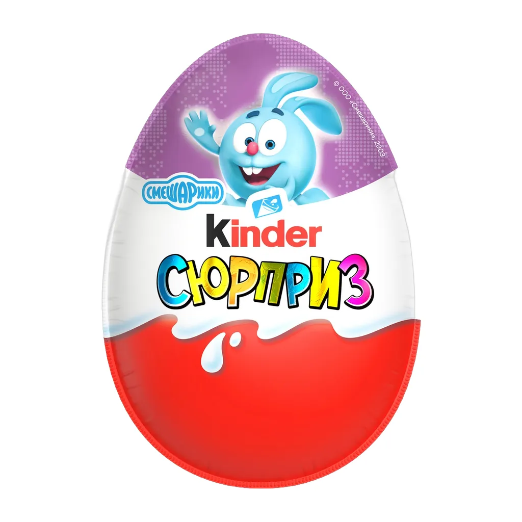 Kinder Сюрприз - яйцо из молочного шоколада с молочным внутренним слоем и игрушкой внутри. Это яйцо из двух видов шоколада: молочного сверху и белого с внутренней стороны. В его полости находится пластиковая колбочка желтого цвета (имитация яичного желтка) с оригинальной игрушкой внутри (какая именно, вы узнаете, лишь вскрыв упаковку). Все игрушки уникальны и производятся эксклюзивно для продукции Киндер.