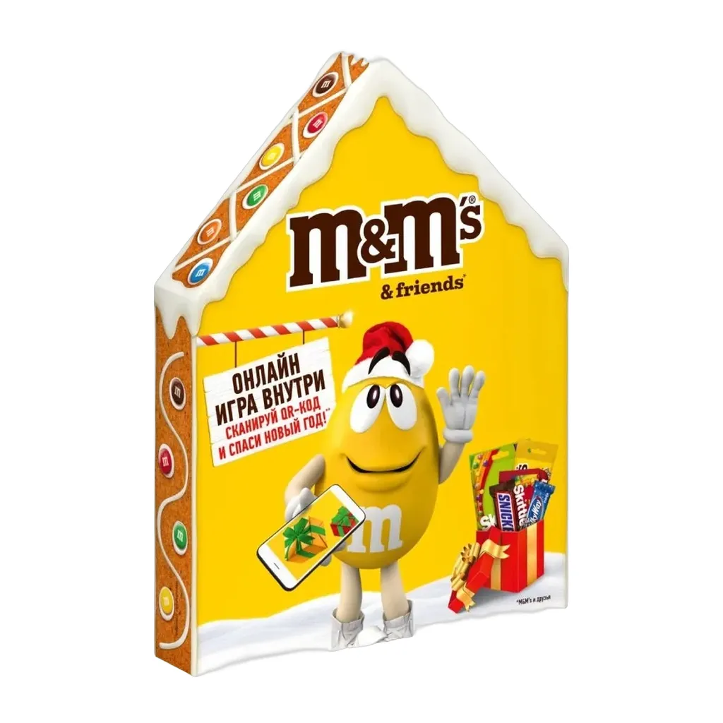 Подарочный набор M&Ms & Friends на Новый Год это пряничный домик, который станет ярким акцентом новогоднего праздника и подарит незабываемые моменты вместе с близкими. В наборе представлены любимые бренды M&M's, Snickers, Milky Way, Skittles.