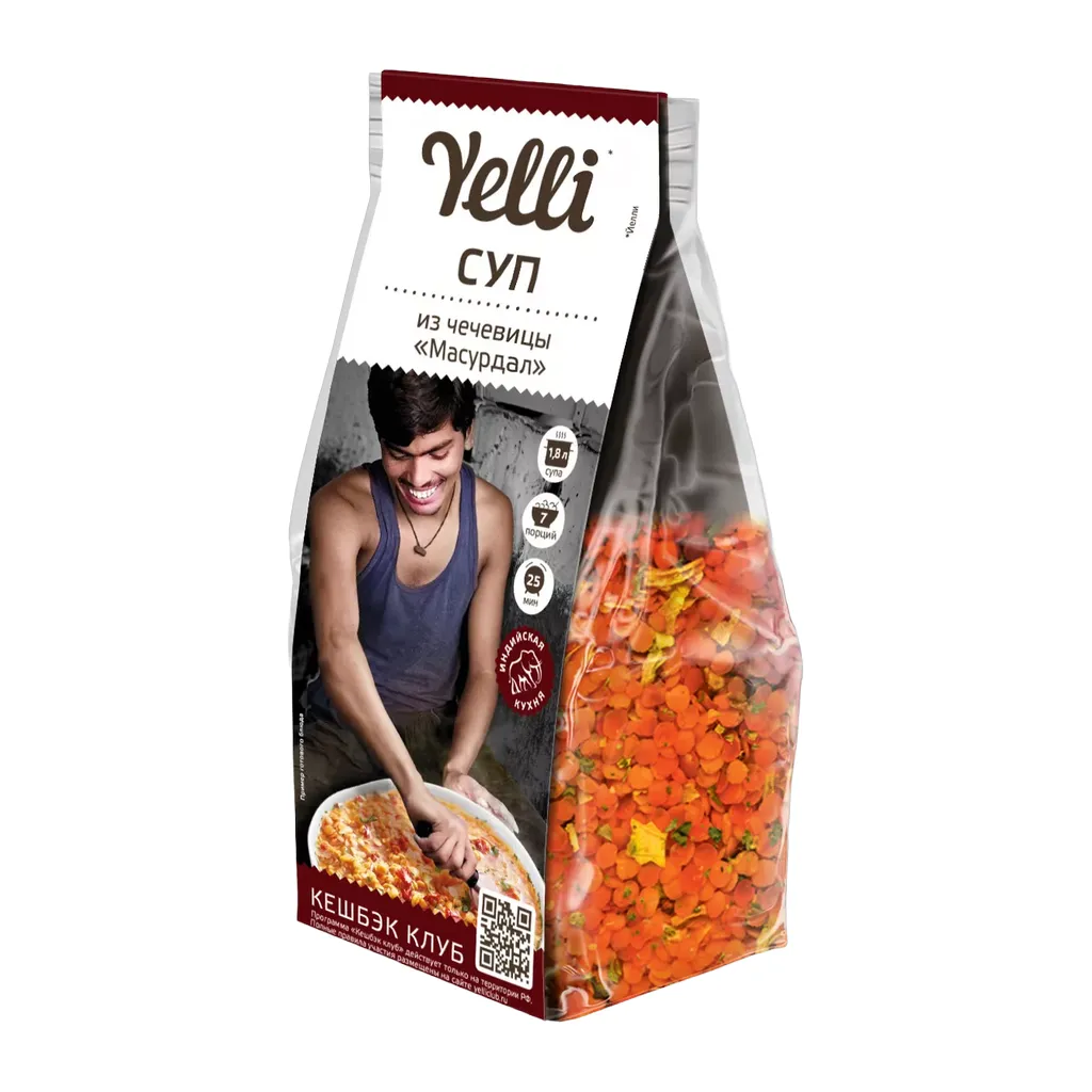 ВНИМАНИЕ 2 ПАЧКИ В УПАКОВКЕ!Дал – традиционное индийское блюдо, сытный, густой и питательный суп, который может быть приготовлен с чечевицей, машем, нутом, фасолью. Дал с красной чечевицей называется Масурдал (Masoor Dal), обычно в его рецепт входят индийские специи и немного овощей.Бренд Yelli предлагает готовую основу для легкого и быстрого приготовления этого вкусного и ароматного обеденного блюда всего 25 минут. Нужно лишь в 1,6 л кипящей воды или бульона высыпать содержимое пачки, варить 25 минут и посолить в конце приготовления. Это идеальный набор для всех, кто не хочет тратить много времени на готовку, но при этом хочет получать сбалансированные и вкусные блюда. Применение смеси не ограничивается приготовлением супа, можно сделать гарнир или самостоятельное второе блюдо, все зависит от вашей фантазии. Продукт сэкономит силы и время на даче или в туристическом походе. Суповая смесь не содержит соли и ГМО, в ее основе только натуральные ингредиенты: красная чечевица, сушеные томаты, лук, петрушка, чеснок, куркума, кумин и перец чили. Чечевица богата белками и имеет высокую питатальную ценность, а специи, приправы и пряности придают блюду острый вкус и неповторимый аромат. Классическое индийское блюдо подойдет веганам, вегетарианцам и людям, которые соблюдают пост. Масурдал от бренда Yelli – прекрасный подарочный вариант для всех, кто любит пробовать кухни разных стран.