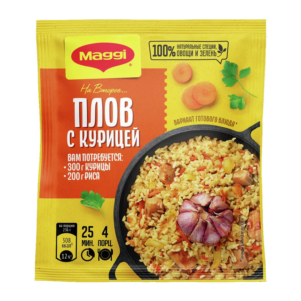 Смесь MAGGI На второе для плова с курицей, 24 г — приправа для приготовления плова с курицей, содержит специи и травы для насыщенного вкуса.