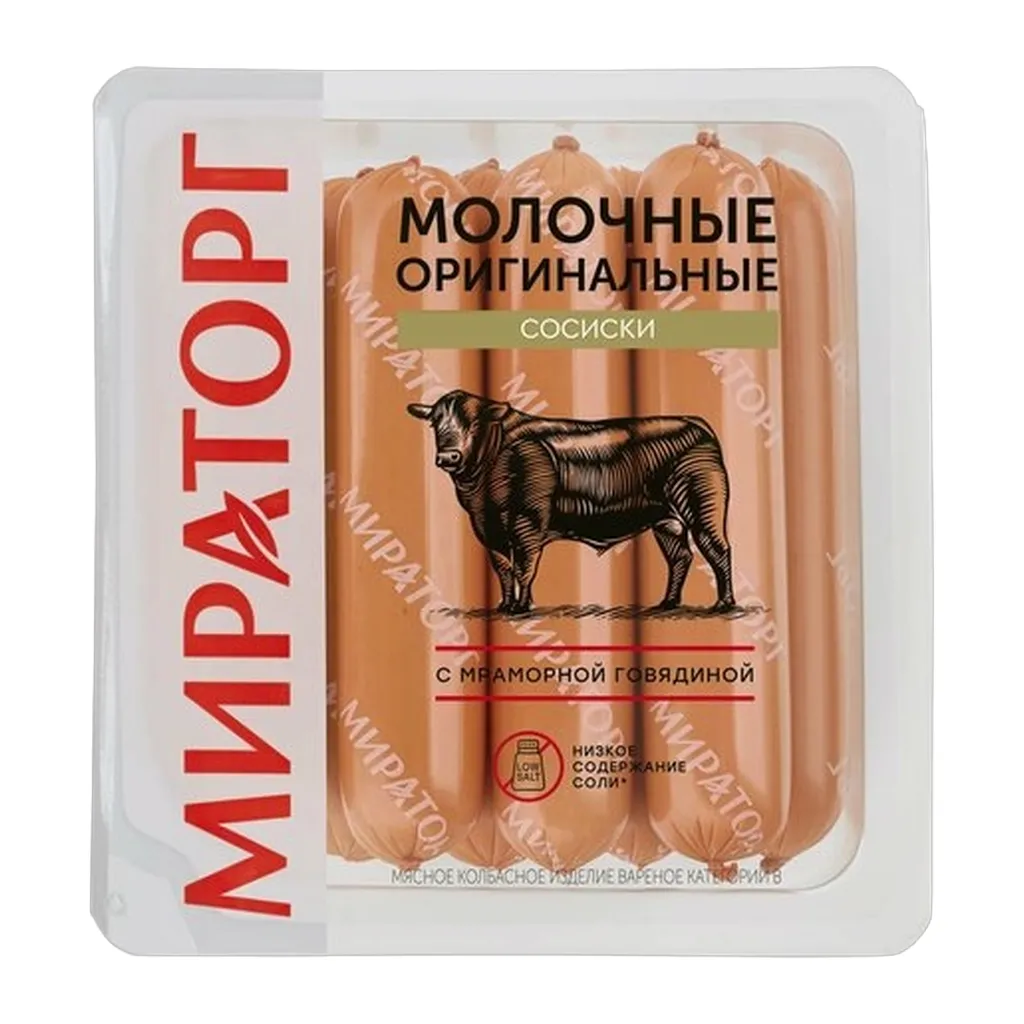 Сосиски Молочные ГОСТ Мираторг 350 г. Вареные из говядины и свинины.
