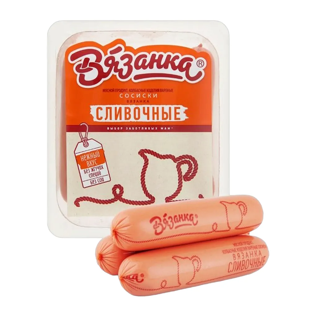Сосиски без жгучих специй, в них волшебно связаны сливки и натуральное мясо, поэтому «Сливушки» такие нежные!