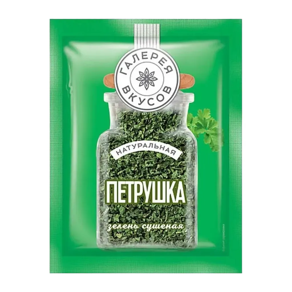 Петрушка относится к самым популярным и широко используемым пряным травам во всем мире. Петрушка обладает насыщенным приятным ароматом и сладковатым пряным вкусом. Приправа сделает более аппетитными салаты, тушёные овощи, блюда из морепродуктов, мяса и дичи. Чтобы сохранить аромат и полезные свойства сушёной петрушки, лучше добавлять приправу в только что приготовленные блюда, которые уже не будут подвержены термической обработке. сушеная петрушка, 25 штук по 7 грамм. Состав: петрушка зелень сушеная