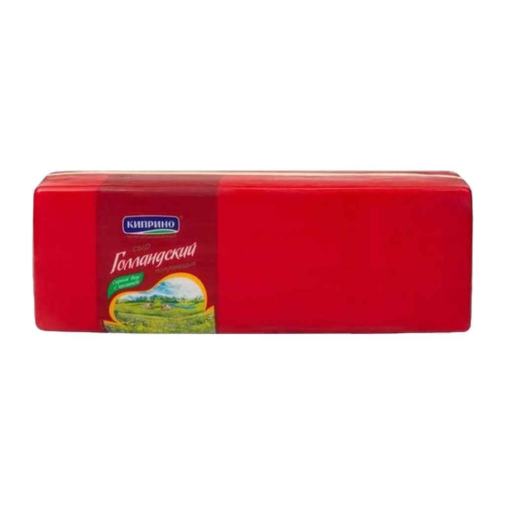 Сыр «Голландский» не зря получил свое название, его история началась в Голландии. И уже на протяжении нескольких десятков лет кипринские мастера-сыроделы варят его по голландской технологии, которую совершенствовали и доработали своими секретами. «Голландский» сыр имеет выраженный сырный, слегка кисловатый, острый вкус и аромат. Структура сыра плотная и одновременно пластичная со «слепым» рисунком. Срок созревания сыра 45 суток.
