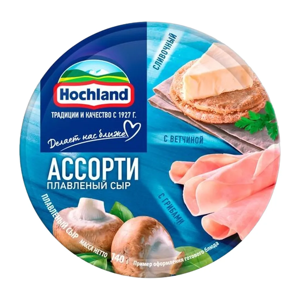 Сыр плавленый Hochland ассорти сливочный с ветчиной с грибами 140г