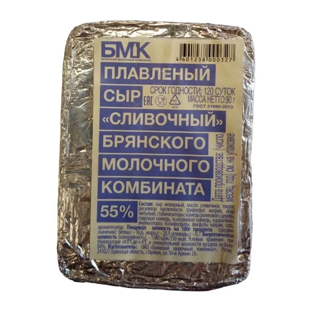Сыр плавленый Сливочный 55% 90г Брянский молочный комбинат БЗМЖ