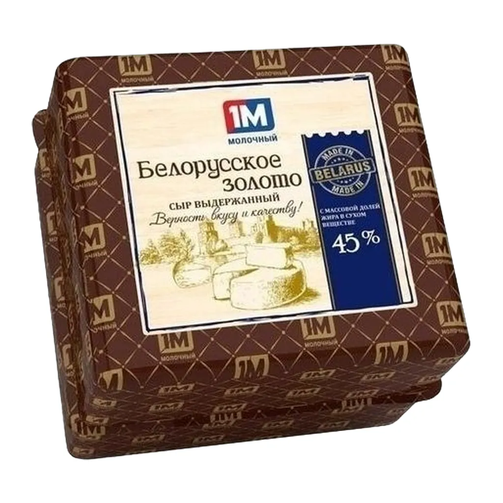 Сыр полутвердый Белорусское золото ТМ "1М молочный" 45% БЗМЖ вес