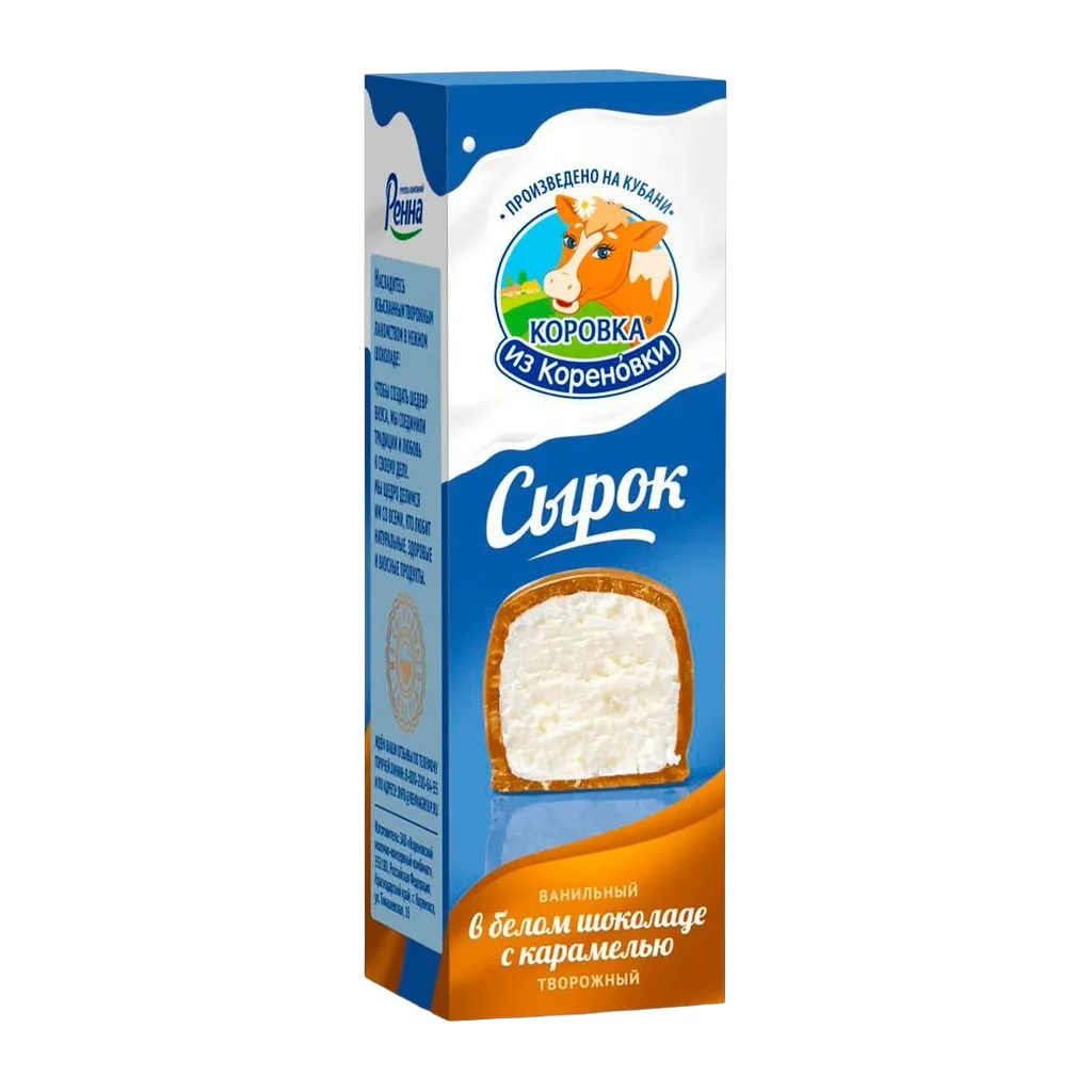 Сырок творожный Коровка из Кореновки ванильный в белом шоколаде с карамелью 50г
