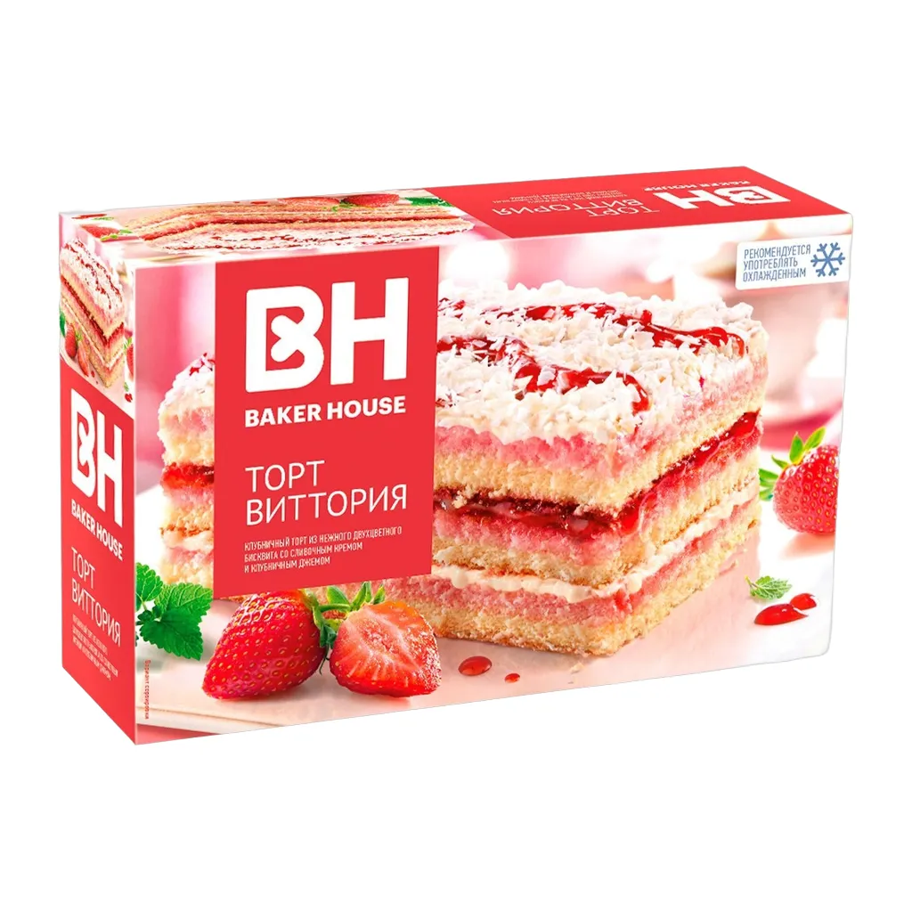 Клубничный торт из нежного двухцветного бисквита со сливочным кремом, клубничным джемом и посыпкой из кокосовой стружки.