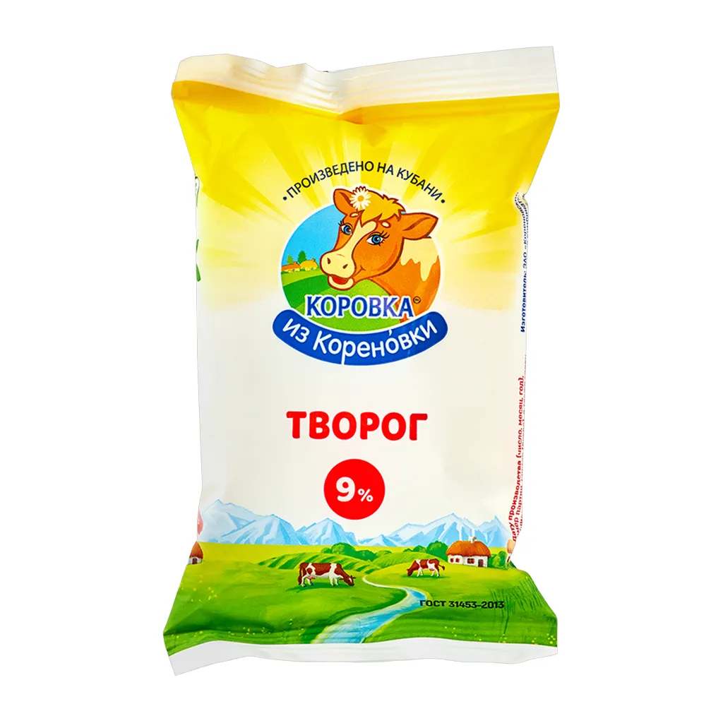 Творог 9% "Коровка из Кореновки" - это высококачественный продукт, произведенный в соответствии с высокими стандартами качества.Творог "Коровка из Кореновки" имеет жирность 9%, что делает его насыщенным и питательным. Он содержит все необходимые для организма человека витамины и минералы, которые способствуют укреплению иммунитета, улучшению обмена веществ и поддержанию здоровья костей."Коровка из Кореновки" известна своим подходом к производству продуктов. Они используют только натуральные ингредиенты и не добавляют в свою продукцию никаких искусственных добавок. Это гарантирует отсутствие вредных веществ и сохранение всех полезных свойств творога.Творог "Коровка из Кореновки" легко усваивается и подходит для людей с различными пищевыми предпочтениями.В заключение, творог 9% "Коровка из Кореновки" - это отличный выбор для тех, кто ценит качество, натуральность и пользу для здоровья.