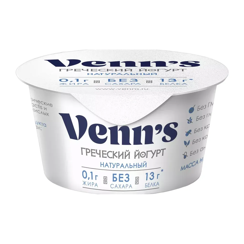 Йогурт Venn's греческий обезжиренный клубничный 0,1% 130г